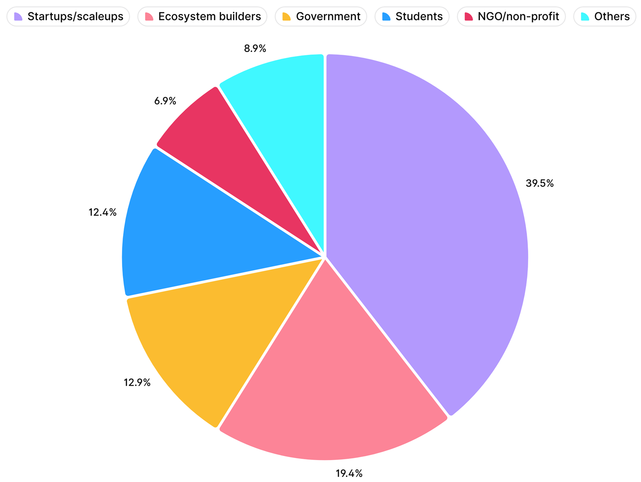 69 startups pitched (with international mix incl. Germany, Bangladesh, South Korea, Indonesia, Sri Lanka, China, etc.)